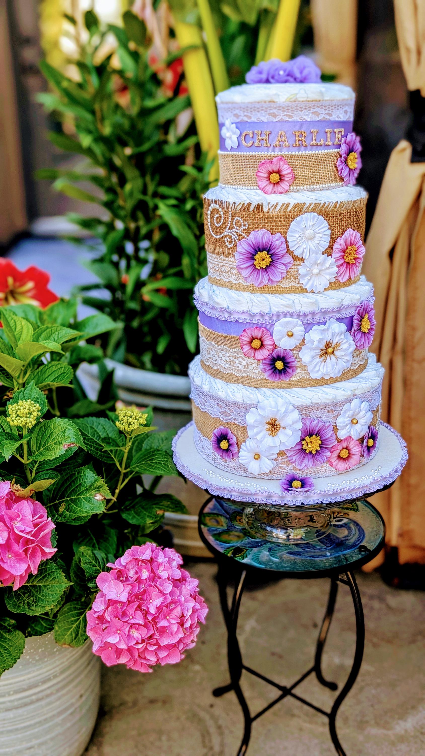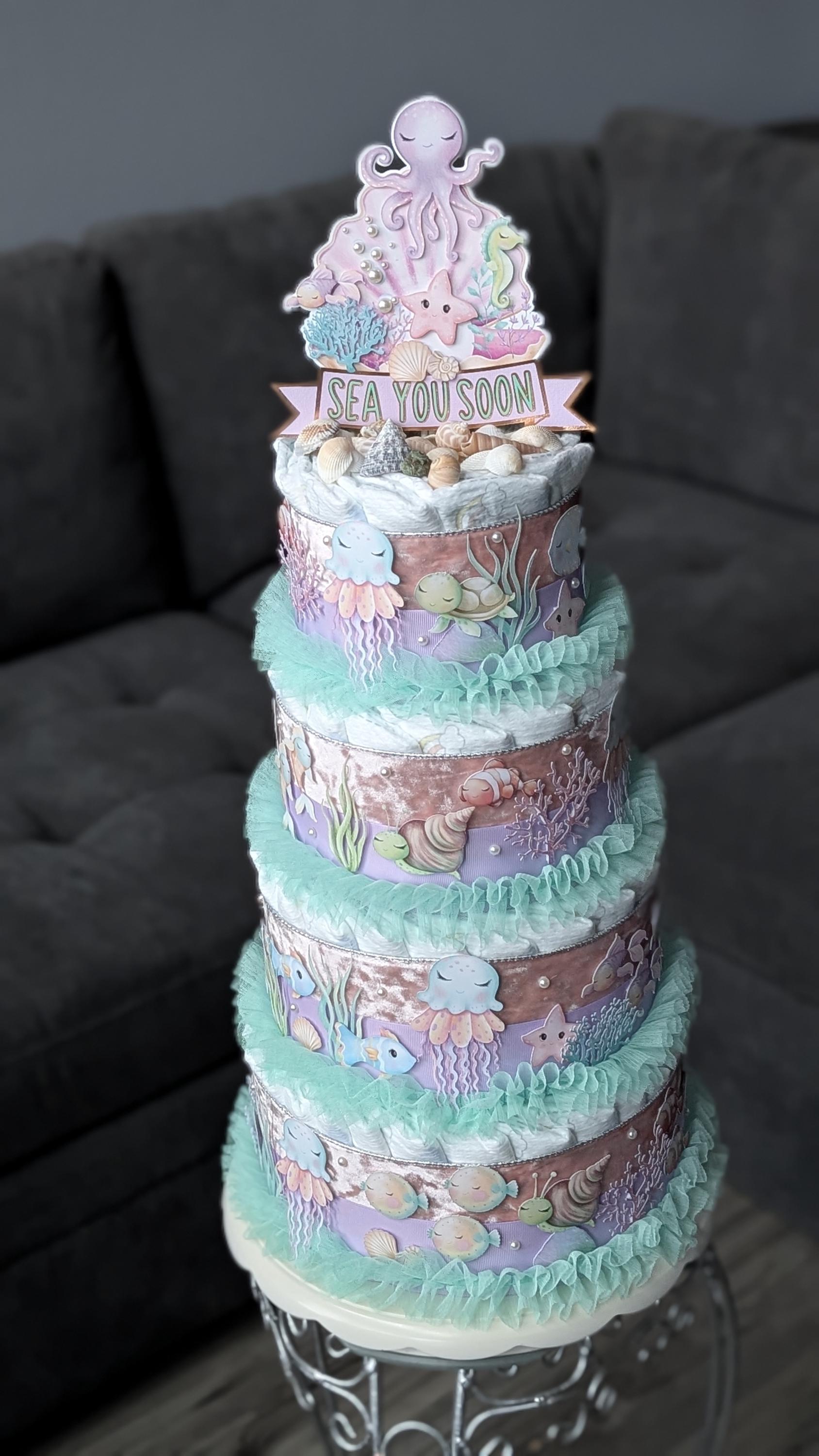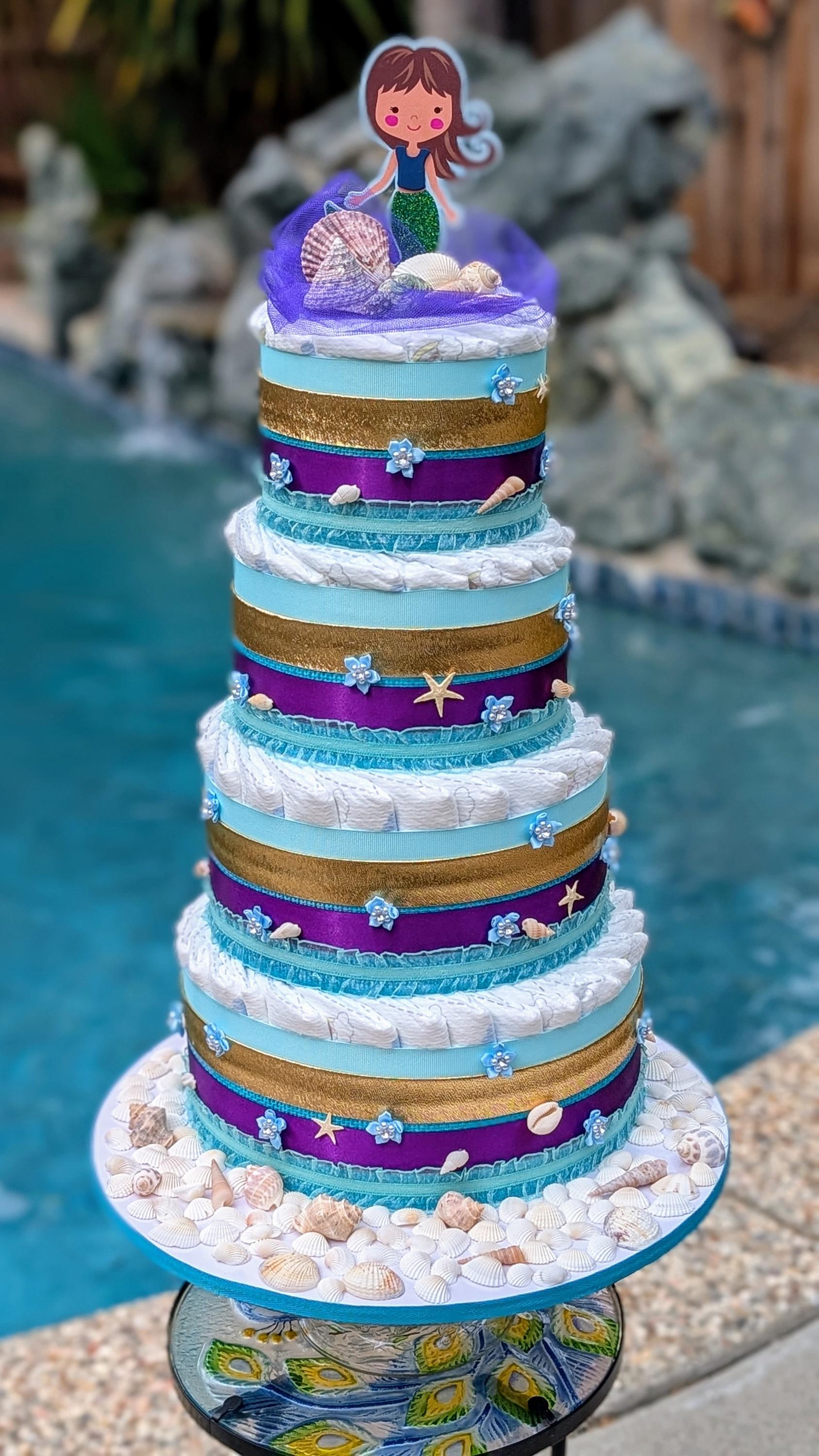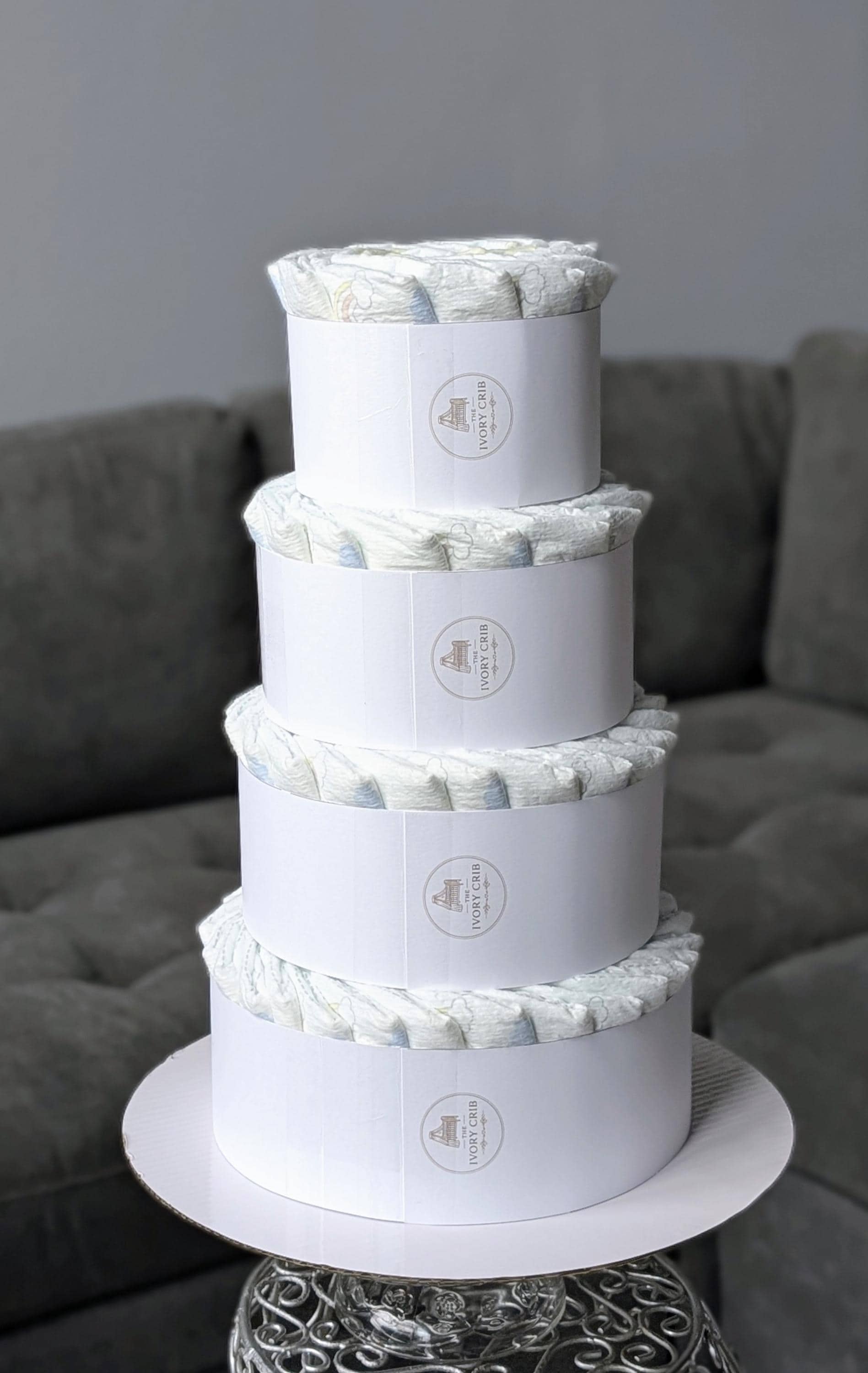 Decorate your own Diaper Cake with The Ivory Crib's Ready-To-Decorate Diaper Cake. This extra large 4 Tier Diaper Cake is ready for you create your own unique design. All you need is your favorite ribbon, some tape, and a hot glue gun. The cardstock wrap around the Diaper layers, serves as a base to attach your ribbon. For orders after Jan 14th, 2025 detailed "Tips and Hints" on decorating your own Diaper Cake will be included.
