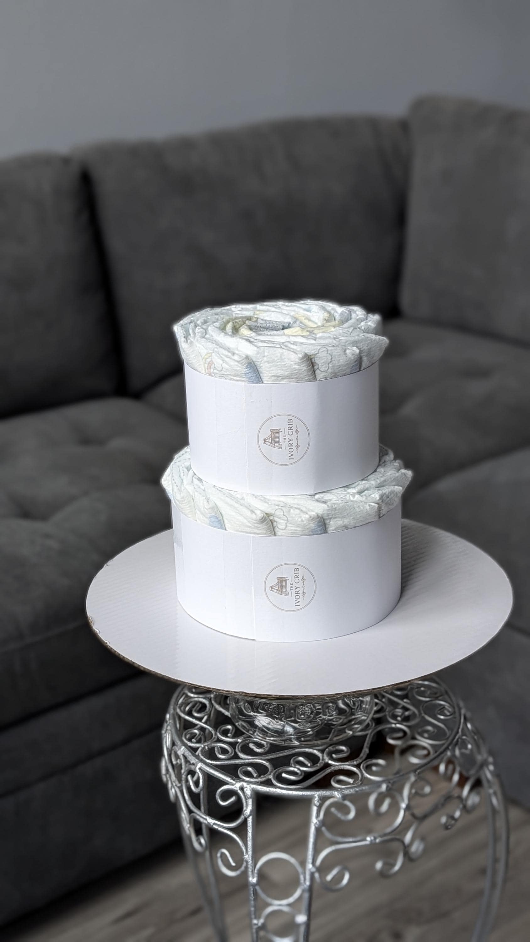 Follow The Ivory Crib on Instagram: www.instagram.com/TheIvoryCrib. All diaper cakes are handmade to order. Please allow 3–5 business days for processing before shipping.