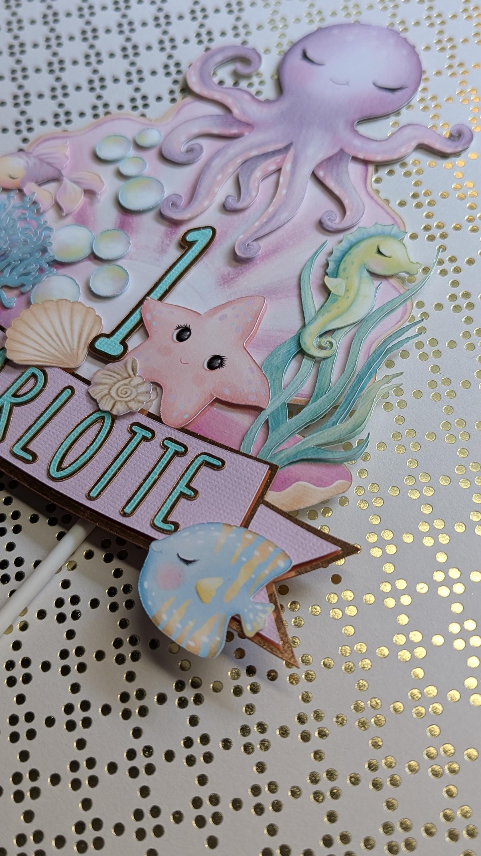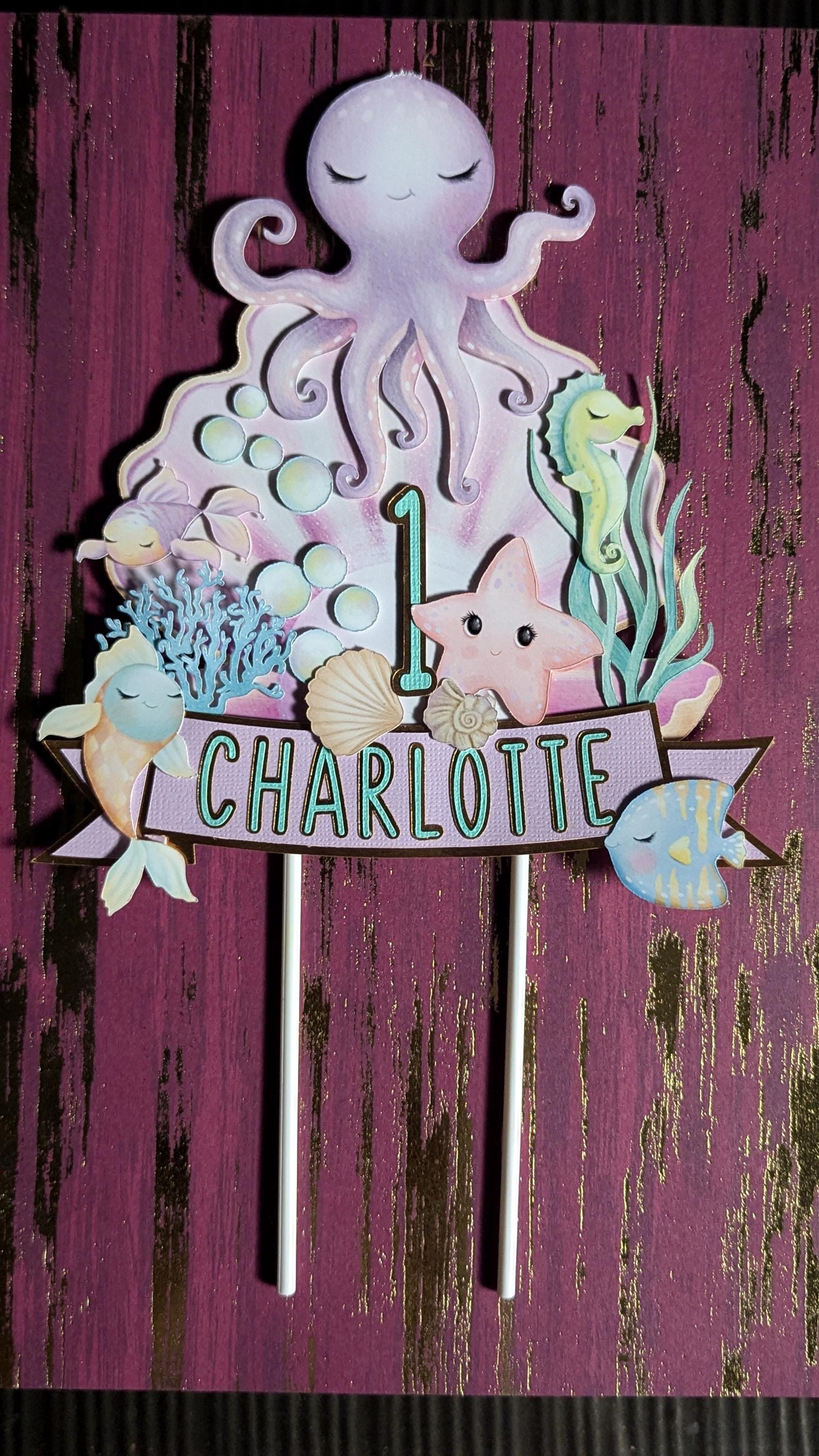 Make a splash at your next party with this adorable sea animals cake topper! Perfect for an ocean-themed birthday celebration. This charming decoration features a playful octopus, a cheerful seahorse, and a friendly starfish. Crafted with vibrant colors and intricate details, this cake topper will surely make your dessert the star of the show. Add a touch of under-the-sea magic to your event with this delightful sea creatures cake topper!